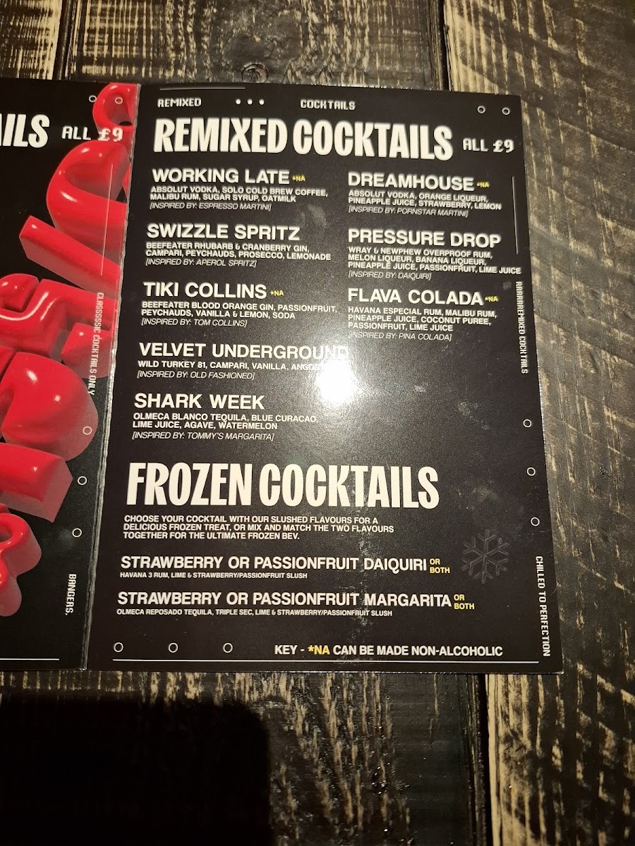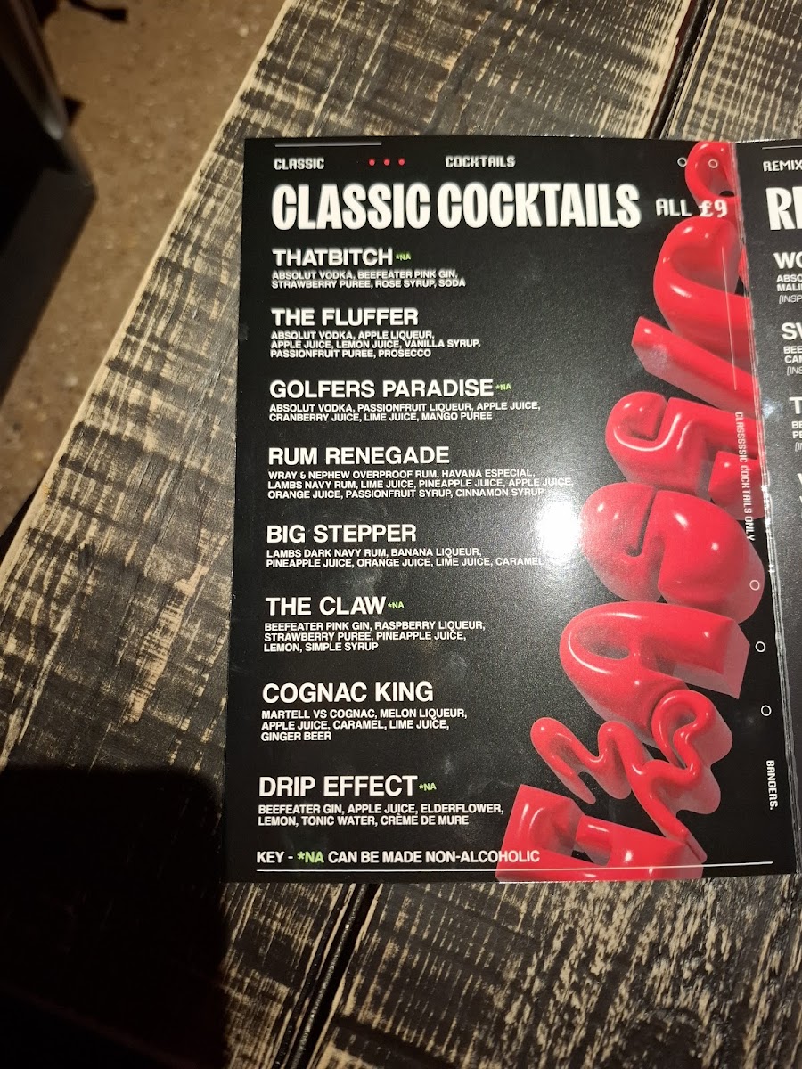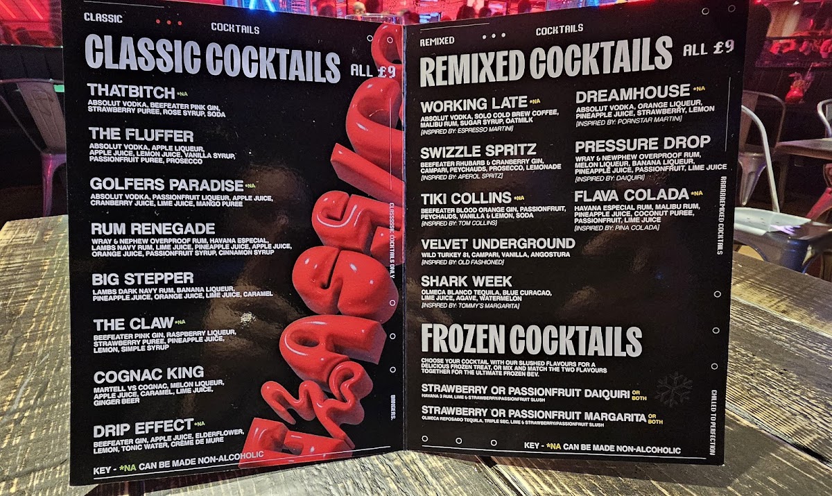What sets Golf Fang Nottingham apart from other themed venues is the seamless integration of its menu with the overall experience. Food and drinks are designed for sharing and snacking between holes, with portions generous enough to satisfy without interrupting the fun. The cocktail list is another highlight-colourful, cheeky, and strong, echoing the venue’s quirky personality. Drinks like bubble-gum cocktails or “freakshake”-style boozy milkshakes add to the novelty without feeling gimmicky.